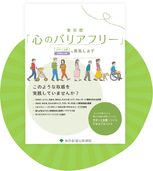東京都では「心のバリアフリー」児童・生徒向けに普及啓発活動を行っています。また、企業が参加いただける取組も実施しています。