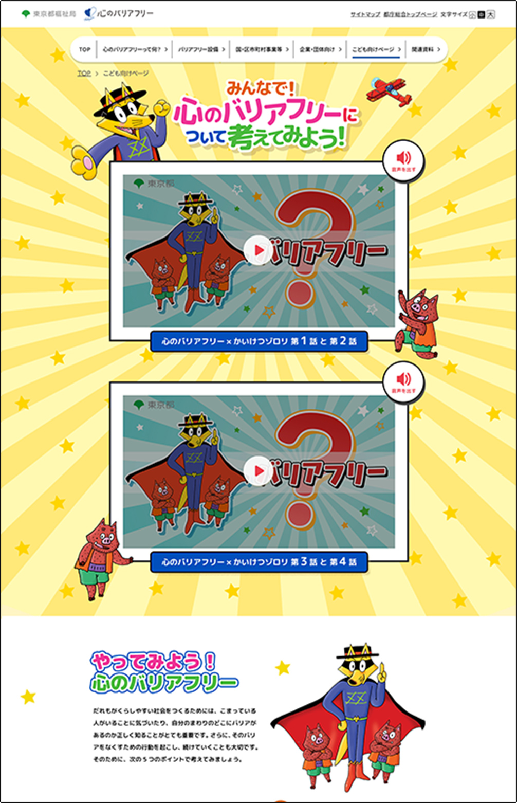 「心のバリアフリー」に関する基本的な考え方は心のバリアフリーって何だろう?のページにて児童・生徒向けに分かりやすい表現でご紹介しています。